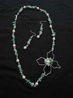 C 76 Cercei lucrati cu sarma placata cu argint, antioxidanta, perle de sticla si accesorii metalice.